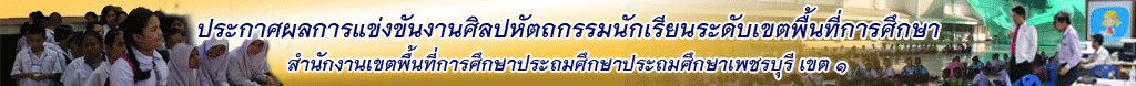 สรุปผลการแข่งขันของ สพป. เพชรบุรี เขต 1 งานศิลปหัตถกรรมนักเรียน ภาคกลางและภาคตะวันออก ครั้งที่ 64 จังหวัดนนทบุรี ประจำปีการศึกษา 2557 ระหว่าง วันที่ 17-19 เดือน ธันวาคม พ.ศ. 2557